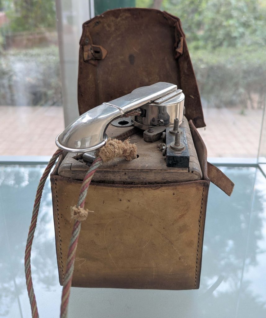 An update: I found the image below in the Science Museum files. It appears to be an AA telephone handset. Perhaps it was installed inside boxes such as the Aysgarth one shown above?