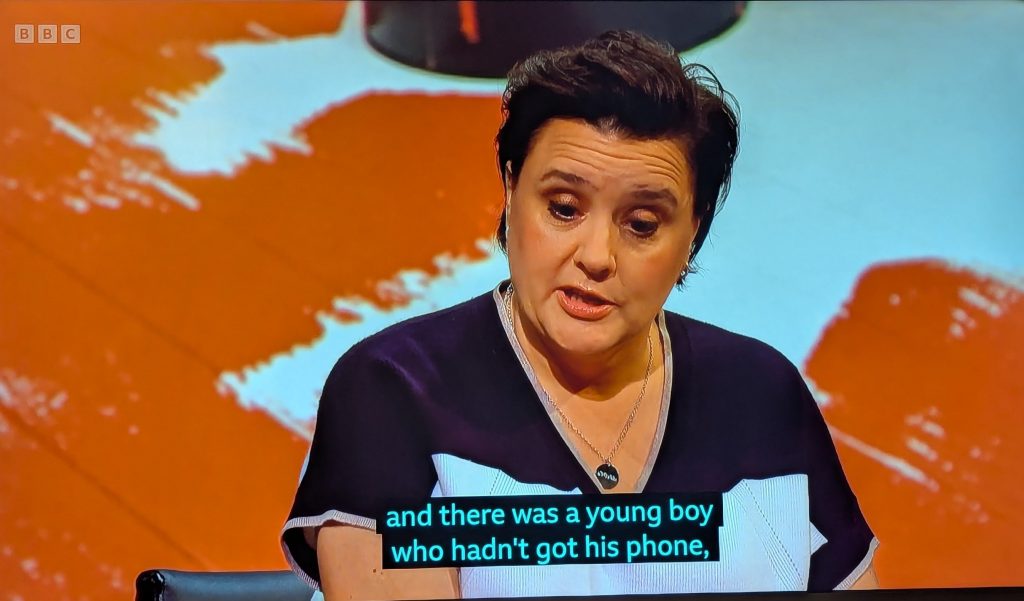 Here is an excellent little story, in the form of screenshots, from Susan Calman, appearing recently on QI.